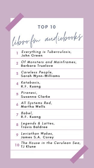 As a thank you, I have compiled a list of the top ten audiobook sellers from last year. Check them out here (I myself have listened to #s 1 and 3 and read #s 5, 7 and 10), and if you haven't already, sign up for Libro using the link below!